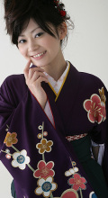 大人っぽい紫に、ゴールドをあしらった大胆な梅の花がとっても個性的!