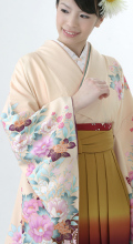 アイボリーにボタンに蝶【袴レンタル着物】K2365