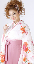 白に八重桜【袴レンタル着物】K2406