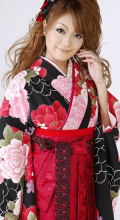 黒にキレイな赤いバラとピンクのバラが大きく描かれたキレイ系の着物!
