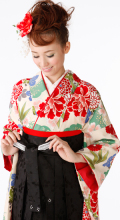 オフホワイトに牡丹・菊【袴レンタル着物】K2867