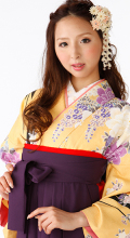 やまぶき色に矢羽根・ボタン【袴レンタル着物】K3013