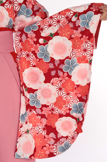 ハカマやさんの卒業式用小振袖(着物)と長襦袢(着物の下に着る下着)は、着付けしやすく加工していますので、着付けに必要な小物も少なくて済みます。 |